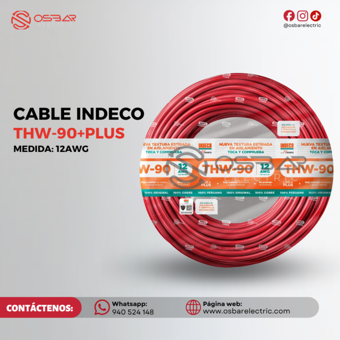 CABLE THW-90+PLUS 12AWG INDECO