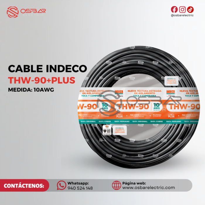 CABLE THW-90+PLUS 10AWG INDECO